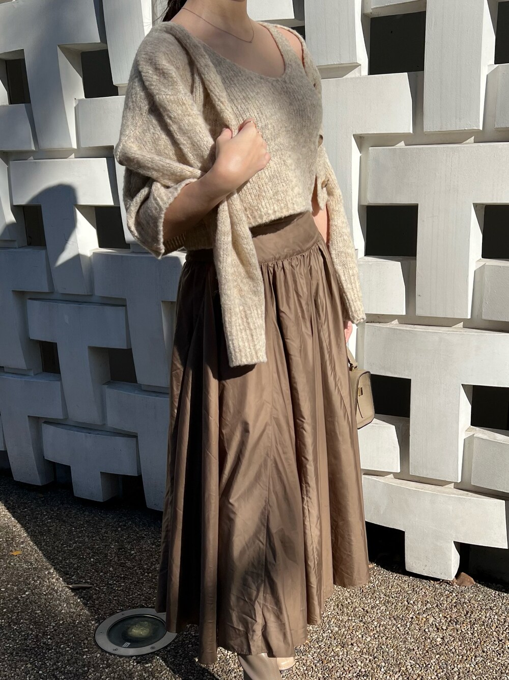 ベージュニットキャミ+カーディガンのSET🫶 肩掛けするとより女性らしく❤️