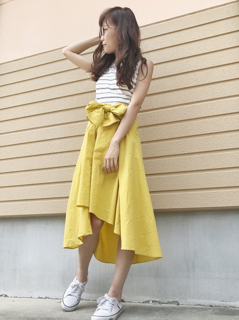 お気に入りのZARAスカート💛 そして大好きなノースリーブニット! 眼鏡は運転用です👓 インスタ→@mitan.m