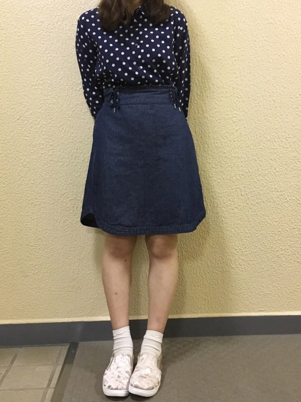 haruna matsumotoのデニムスカート「フリルレースアップヘムデニムスカート」を使ったコーディネート