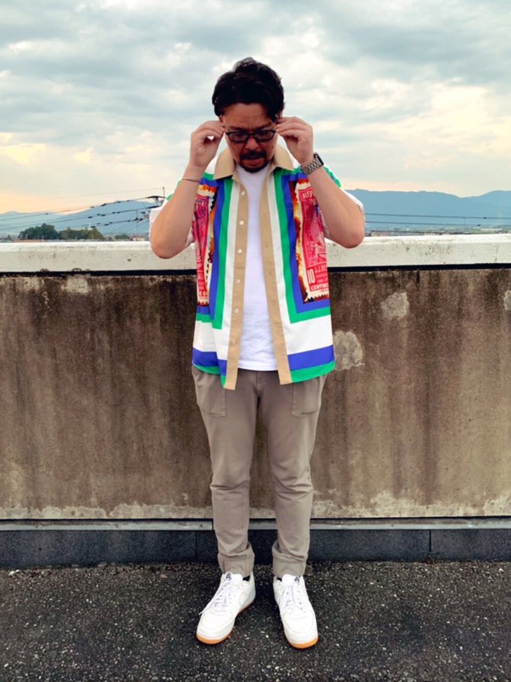 30代ぽっちゃりコーデ トップス/WANNA Lサイズ インナー/United athle XLサイズ ボトムス/ELKEX XLサイズ シューズ/NIKE Air Force 1