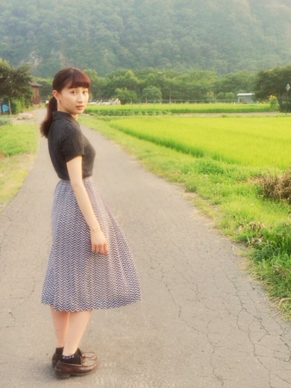 今日はちょっぴりシックに👵🌷 ワタシの住むところは、田んぼと山に囲まれてるTHE田舎なのです👐