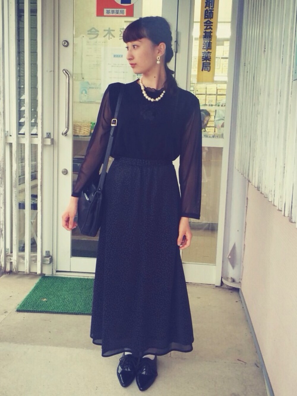 オールブラックコーデ。 トップスは地元の古着屋で一目惚れの品!袖がシースルーでとても可愛いのですー。💘 ロケーション適当すぎて薬局の前だけど 笑 もう完全に秋服に移行してる!秋服らぶ!!! 今日まで上京してて東京満喫してたー!もうすぐ長野ー!🗻🗻
