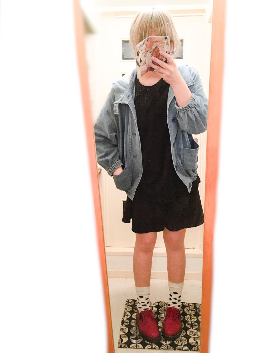 昨日のコーディネートです。 ラフで定番のGジャンスタイル。 ネネットのGジャンは何年か前に 一目惚れ購入◎ 靴下はmonomaniaで高校生の時に購入したもの。 未だに履いている…水玉かわいい。 いくつになっても水玉好きです。