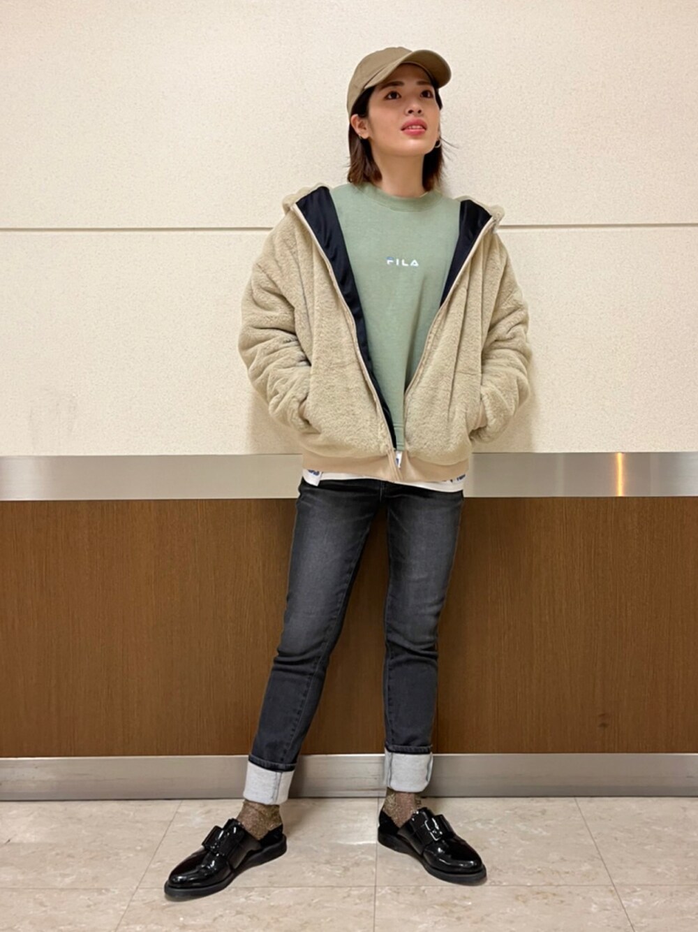 年齢問わず楽しめる、FILAで落ち着いた雰囲気の冬コーデ⛄️❄️ アウターは【フェイクファーパーカー】を着用。とにかく触り心地がふわふわでとても気持ちよく、暖かいです!前から見るとシンプルですが、ロゴが後ろに大きく描かれています!ファーのパーカーは1つ持っておくだけでどんなコーデにも使えます🪄 トップスは【あったかレイヤードスウェット】を着用。裏起毛になっているのでとても暖かいです!流行りのフェイクレイヤードでワンポイントにもなります✨柔らかい生地でサイズ感もゆったりしているのでとても着やすい商品になります! ボトムスは【 BODY FIREテーパードパンツ】を着用。サムシングの定番のテーパードパンツの冬仕様になります!昨年と比べて暖かさが格段にアップしてます🔥スニーカーと合わせてカジュアルにも、ブーツと合わせても大人っぽくて綺麗めな印象になります! 下の商品のアイコンから🛒へ入れることができます!