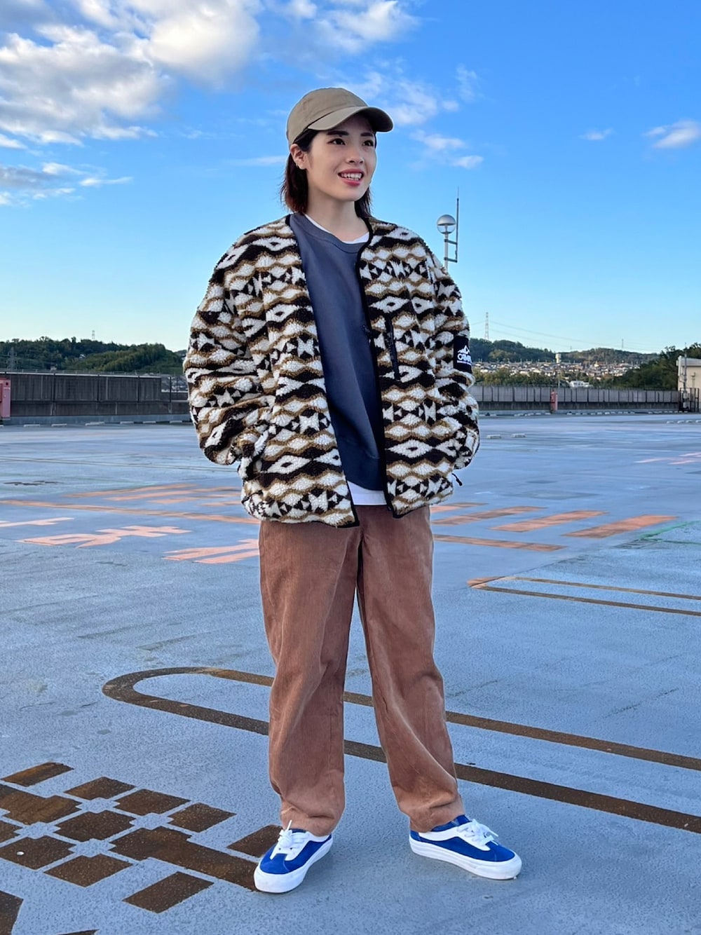 ボアジャケットでメンズっぽいゆるゆるコーディネート🦊🤎 アウターは【リバーシブルボアジャケット】を着用。コーデの主役になる派手なボアジャケットを裏返すとシンプルな黒のアウターにもなります!ボアジャケットは暖かく冬の必須アイテムです🔥身幅がゆったりとしているのでこれから寒くなる季節、中に沢山着込んで頂くことも可能です! トップスは【Champion 無地クルースウェット】を着用。チャンピオン定番のスウェットはどんなスタイルにも合うので1枚持っておくだけで沢山使えます!なかにタートルニットを着たり、レイヤードスタイルにしたりしても楽しめます🎶 ボトムスは【コーデュロイパンツ】を着用。冬はやっぱりコーデュロイが可愛いです!ゆったりしたシルエットで裾を少しおったりしても可愛いです!ウエストの後ろの部分がゴムになっているのでとても楽に履いていただけます🪄