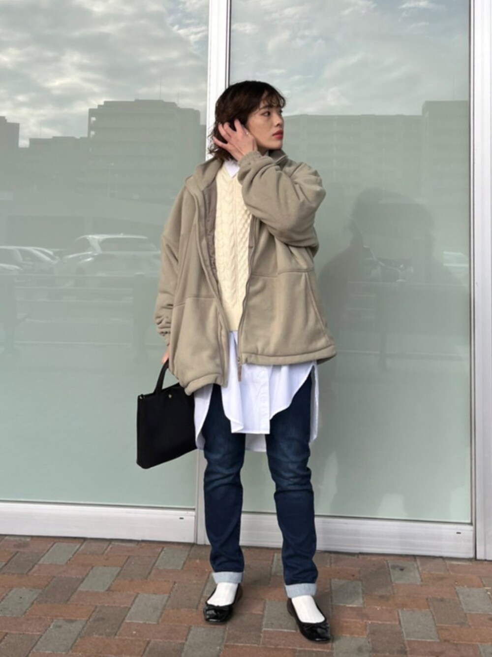 アウター ▷【フリースジャケット】 太陽の光を吸収して熱エネルギーに変換する繊維を使用しているため、とても暖かく、軽いアウターとして着ていただけます!袖の部分も全体的にゆったりとしたシルエットになっているので、中にスウェットやパーカーなど着ても余裕があるくらいです👍🏻 トップス ▷【袖ボリュームケーブルニット】 もちもちと柔らかな肌触りのニットです!シャツなどレイヤードしたスタイルがオススメです✨スカートなどと合わせるとさらに女性らしい雰囲気になります◎ シャツ ▷【ボリュームシャツ】 ビッグシルエットでロング丈のトレンド感のあるアイテムとなっております!おしりが隠れるくらいの丈感なのでなので、細身のパンツを合わせたりすると綺麗めな雰囲気になります❣️秋口は1枚もしくはベストなどと合わせたり、冬になってくるとスウェットなどと重ね着するのがオススメです! ボトムス ▷【 WARMボーイズフィットデニムパンツ】 裏起毛になっている冬仕様のデニムになります!ストレッチが効いていてとても履きやすいのが特徴です🪐おしり周りにゆとりのあるシルエットですが、太すぎないので細身のパンツが苦手な方にオススメの商品です! バッグ ▷【ミニショルダートート】 ショルダーバッグとストラップを外すとトートバックとしてもお使い頂ける2WAYタイプのバッグです!内側にはポケットも付いているので小物の収納にも役立ちます🧸