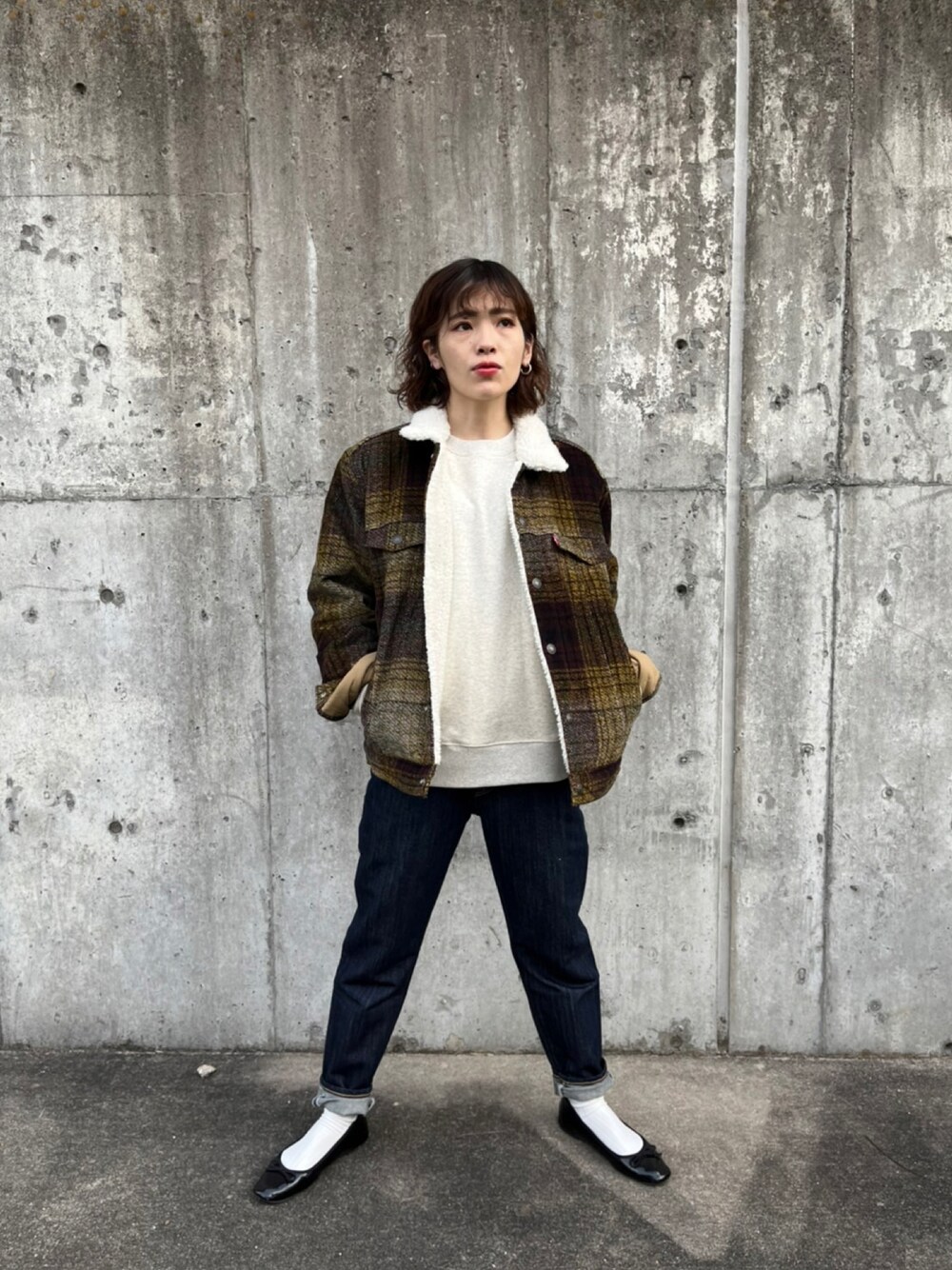 アウター ▷【シェルパトラッカージャケット】 リーバイスのトラッカージャケットに裏がボアで冬仕様になっています!袖部分の裏地がキルティングでスムーズに通せるようになっています🧶主張の激しすぎないチェックになっており、これを羽織るだけでコーデが様になります! トップス ▷【裏シャギークルー】 裏がシャギー素材になっているので暖かく快適に着ていただけます!大きすぎない定番のシルエットかつ、シンプルなデザインなのでどんなアイテムにも合わせやすいです💘カラーも6色展開で種類豊富にご用意しております! ボトムス ▷【和紙デニムテーパード】 和紙デニムとは、ヨコ糸に和紙糸を使用したもので、軽くて強いのが特徴です!肌触りも爽やかでオールシーズン履いていただけます🐰シルエットは少しハイウエストで裾に向けて細くなるテーパードとなっており、スタイルアップ効果があります!