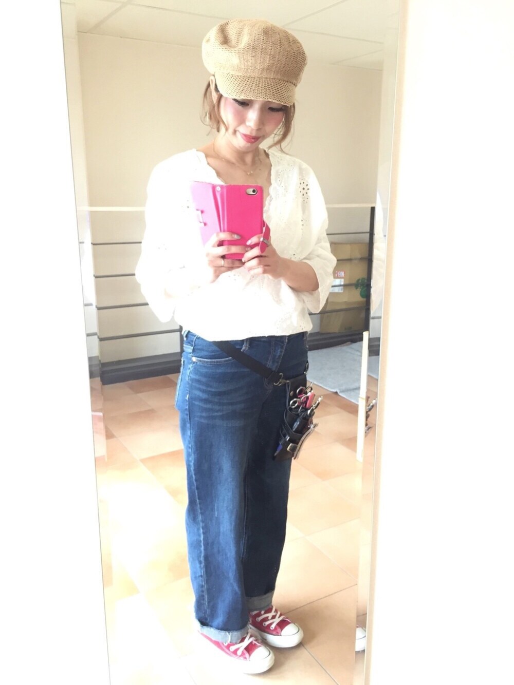 miharuのスニーカー「converse コンバース ALL STAR 100 COLORS HI オールスター 100 カラーズ ハイ 32960562 RED」を使ったコーディネート