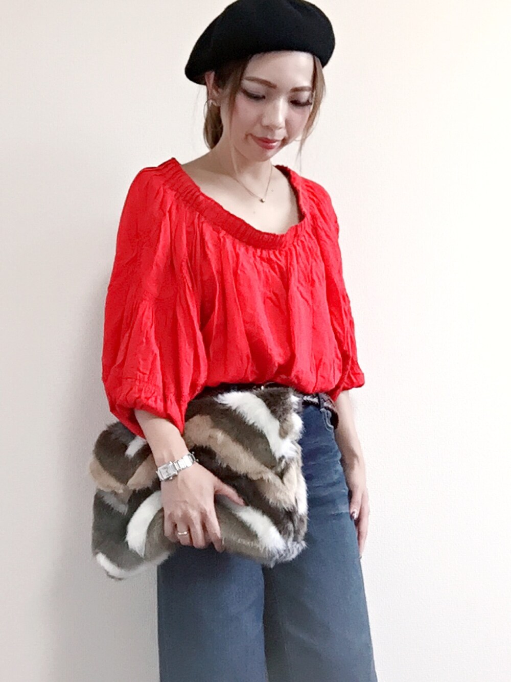 miharuのシャツ/ブラウス「タックオフショルブラウス」を使ったコーディネート