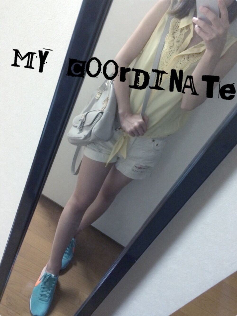 夏なコーデ(^^) 角度でちょっと小さく見えるけど もってるリュックのなかでは大きめ♪ tops:forever21 pants:FREE'SSHOP shoose:NIKE 22.5cm
