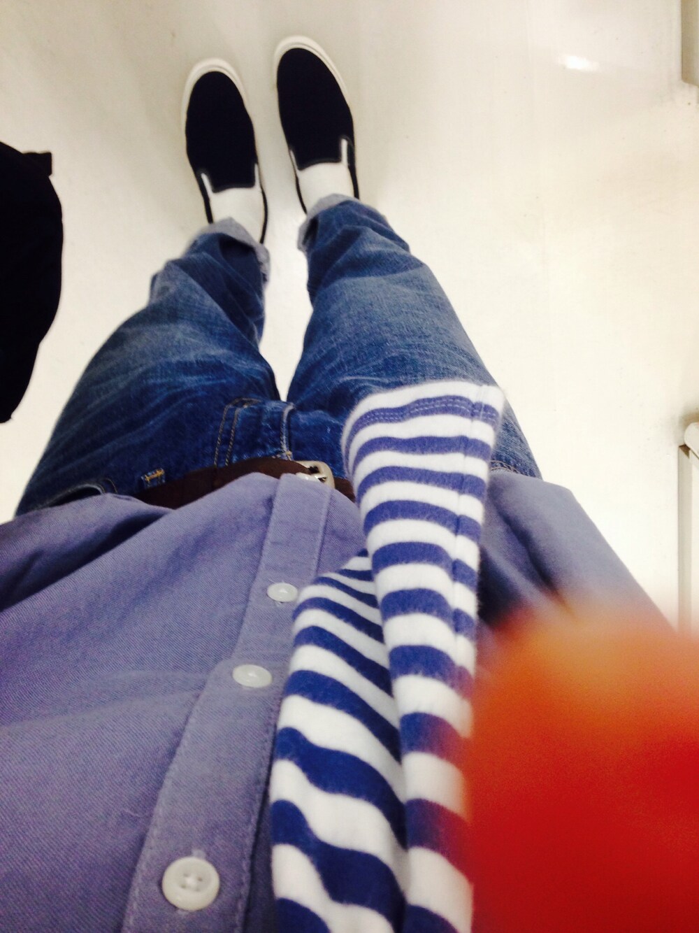 シャツ:niko and... シャツ以外全て無印 無印コーデ!!シンプル過ぎるので、ボーダーロンTを追加しました. 撮り方下手過ぎて指が写ってる...