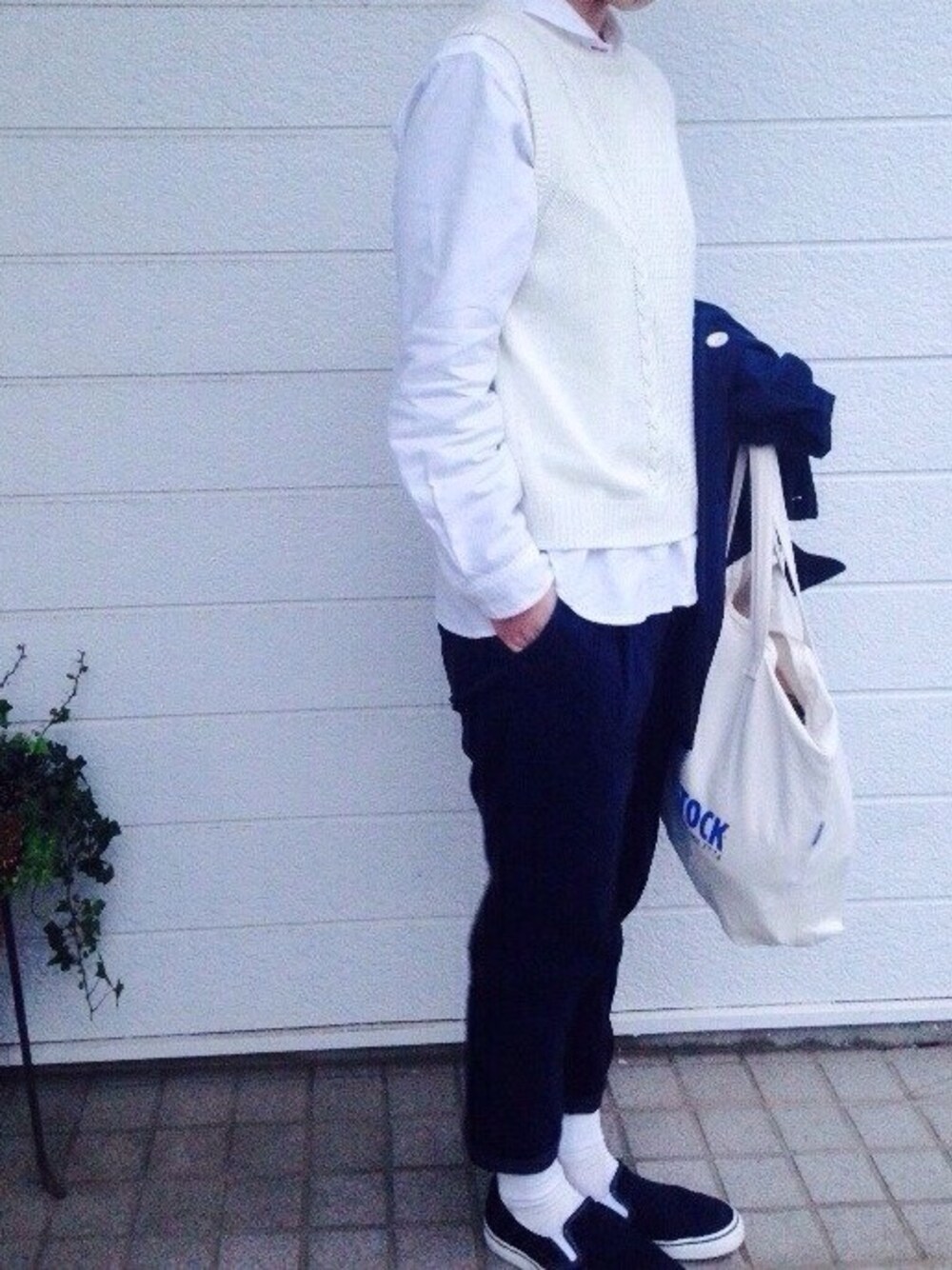 ベスト:studio CLIP シャツ:niko and... パンツ:ZARA 靴:無印 寒い日のコーデ.