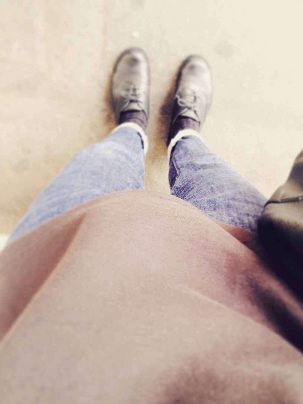 トップス:wcloset パンツ:ユニクロ 靴:グローバルワーク ほぼblackコーデ. 耳元に唯一えんじ色のピアスで差し色