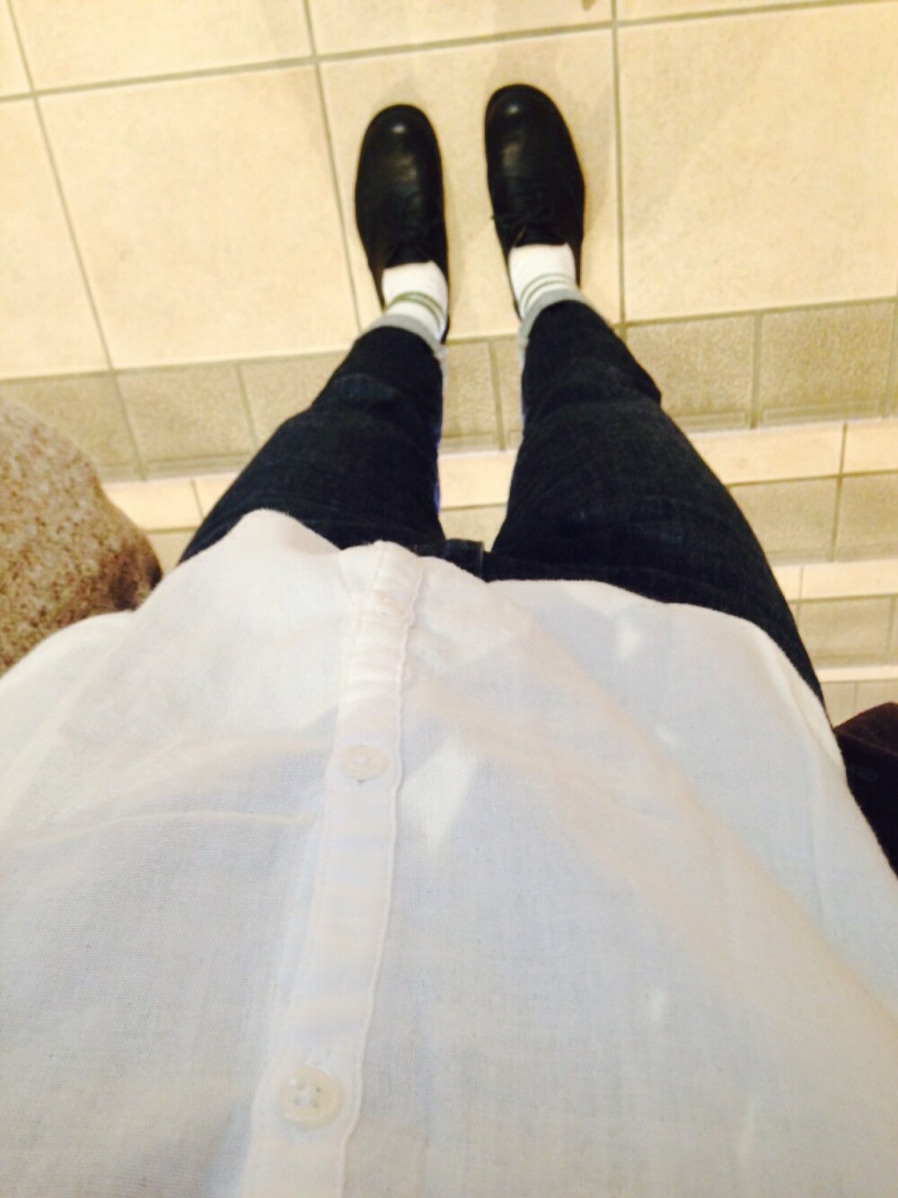 シンプルです。いつもです。 シャツ:無印 パンツ:ユニクロ 靴:グローバルワーク シンプルなので、メガネをプラスしました。