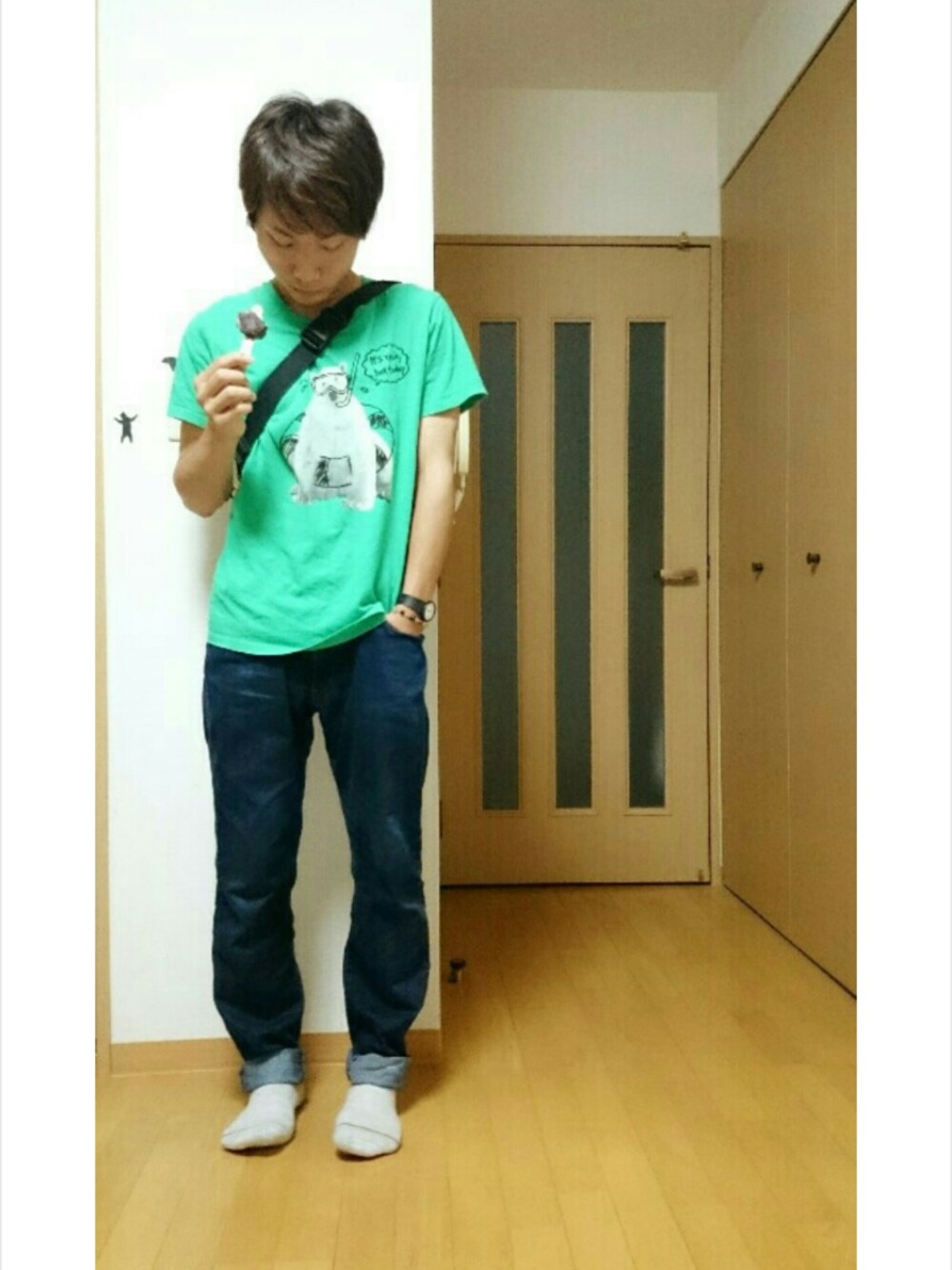 トップス : ブランド不明 パンツ : UNIQLO 靴下 : ブランド不明 かばん : いつもの 餃子でおならが臭すぎる綾野さん。 攻撃ヤメロ!!