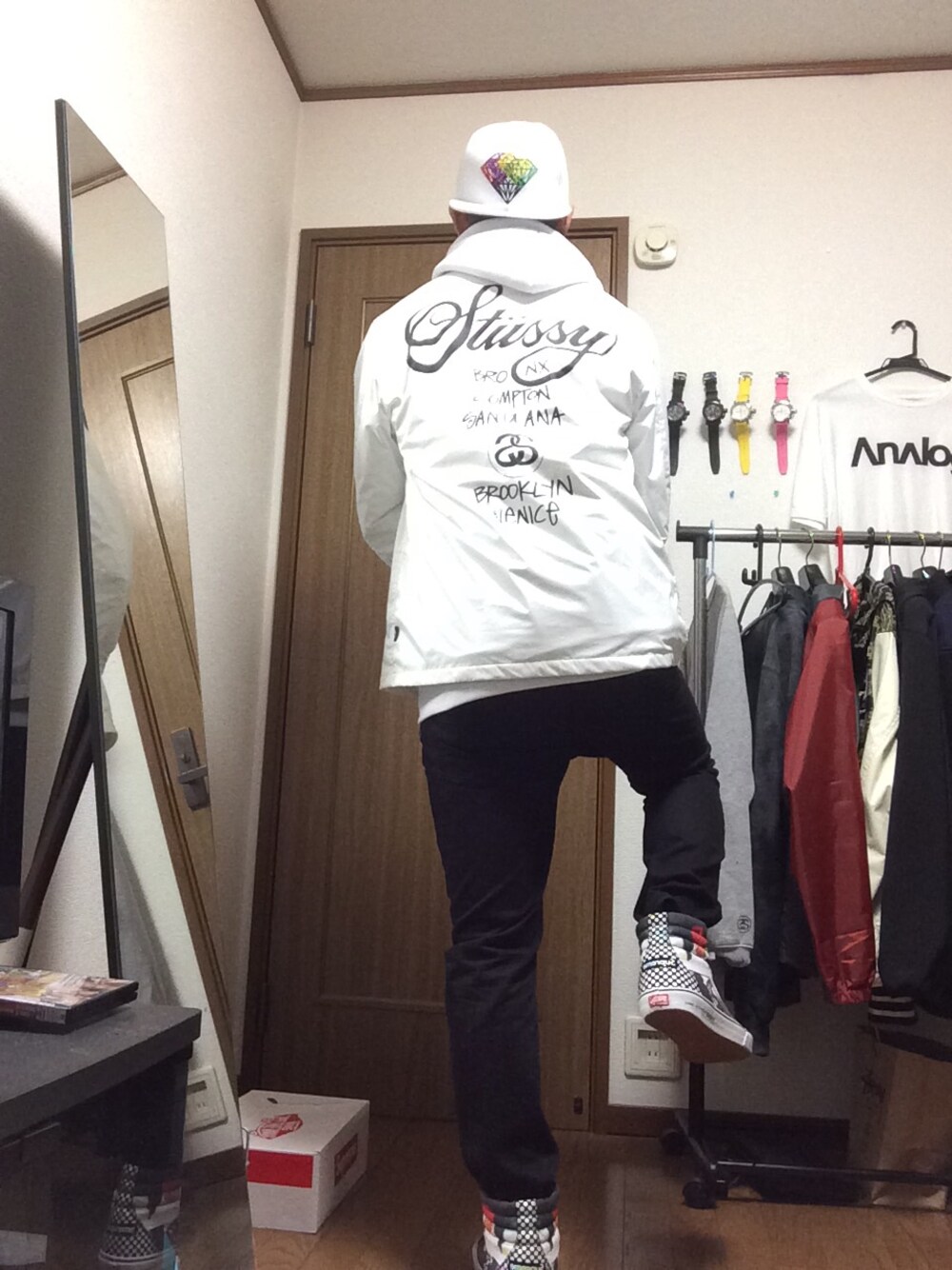白 白 白 黒! って感じっす!! 白のキャップdiamondのやつしかなくて、すこし浮いてるのは黙っておいてください(._.)