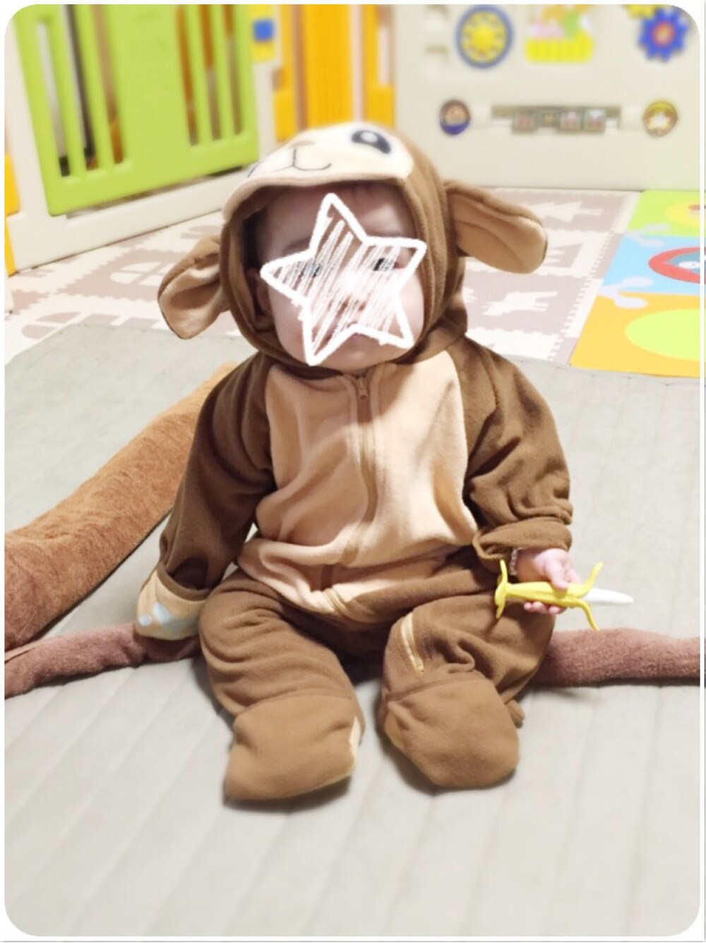 妹がプレゼントしてくれたお猿の服*\(^o^)/*年賀状用に写真撮りました♪