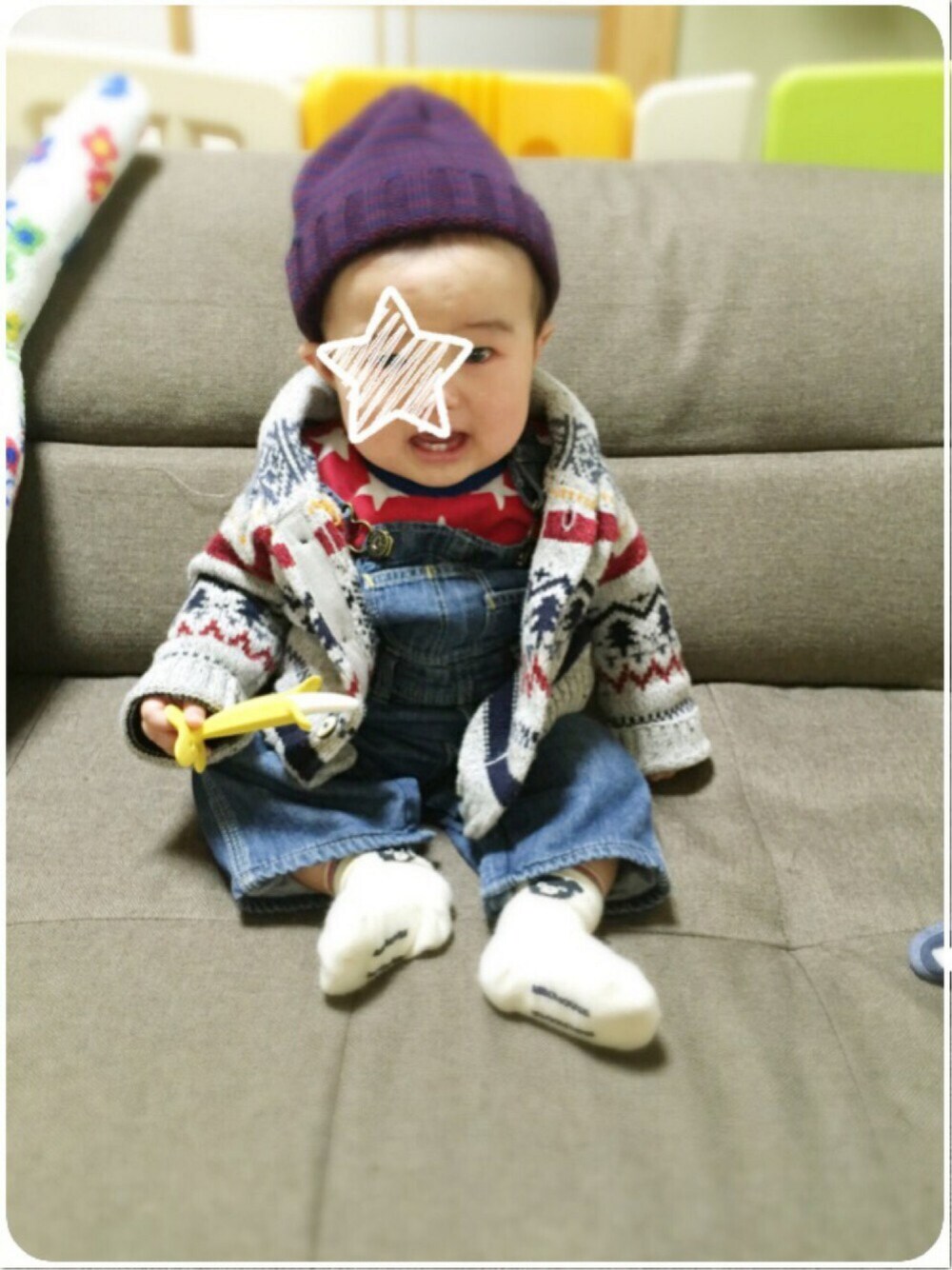 またオーバーオールをアップです 持っていたオモチャを取り上げたら激ギレされました! そして💩臭がして見てみたら 漏れていて手について 服脱がしてたら動いて背中じゅう💩に シャワーで洗いにお風呂にいったら大暴れして母子ともに💩に、、、