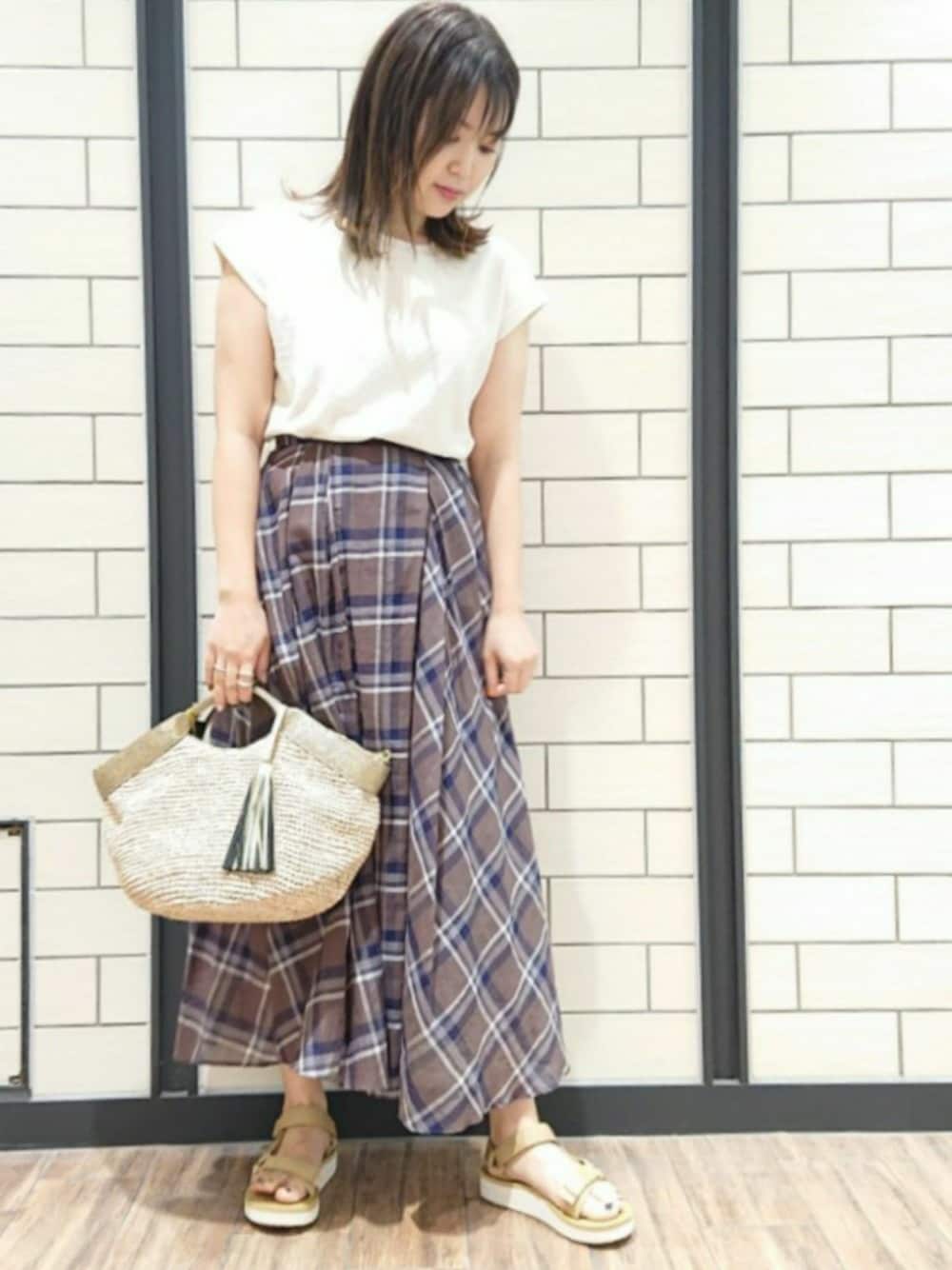 ヤマサキナナのスカート「アシメチェックマキシスカート」を使ったコーディネート