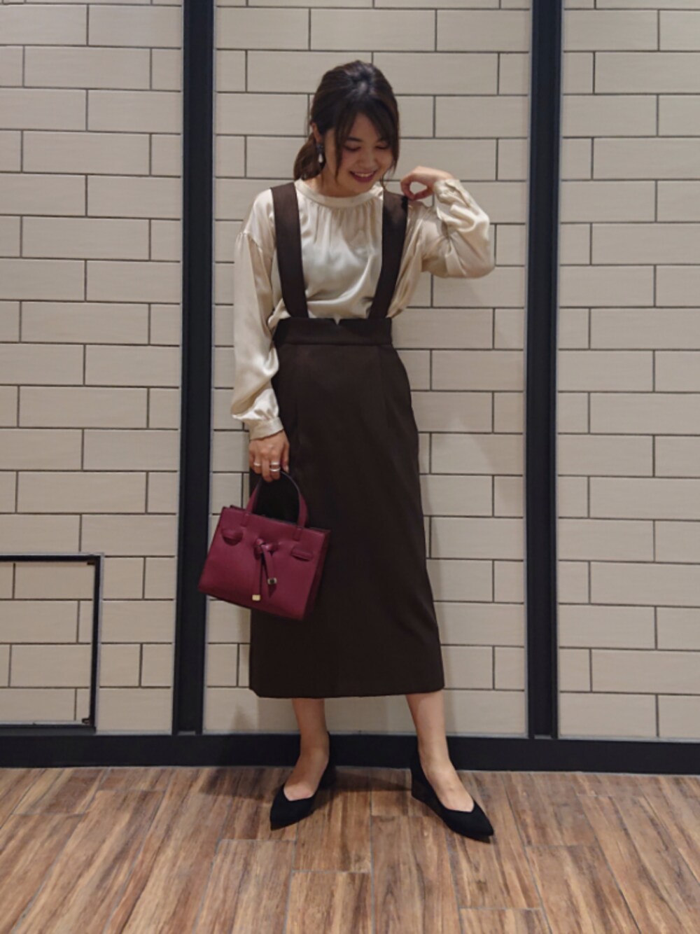 ヤマサキナナのシャツ/ブラウス「サテン楊柳ボリュームスリーブブラウス」を使ったコーディネート