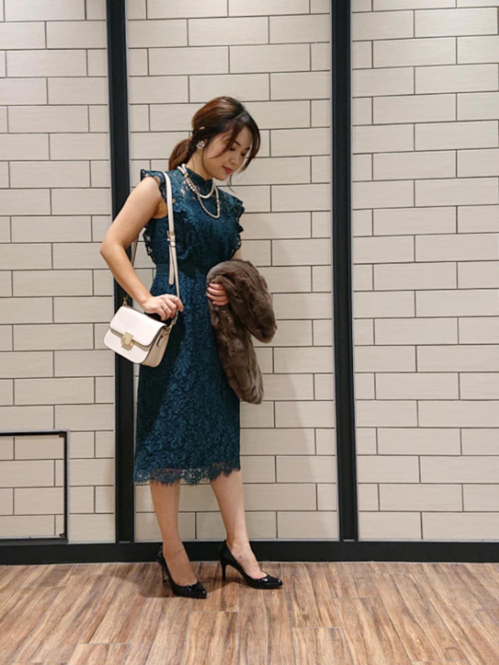 ヤマサキナナのドレス「配色レースコクーンドレス」を使ったコーディネート