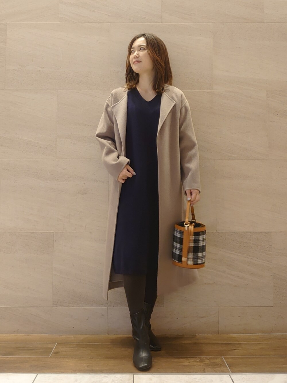 ヤマサキナナのワンピース「『一部WEB限定カラー』カシミヤ混ラムウールVネックニットワンピース」を使ったコーディネート