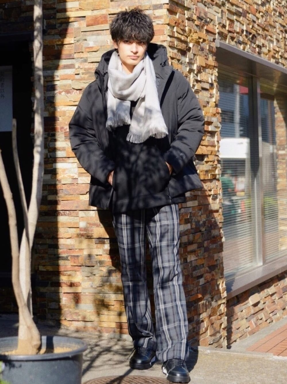 おはようございます!すっかり寒さが厳しくなりましたね。 そんな寒いときにオススメしたいのはダウンジャケットを使った大人コーデ。 ポイントはホワイトのマフラーとチェックパンツでスマートな印象に。防寒性もバッチリです。 model:ジョージ