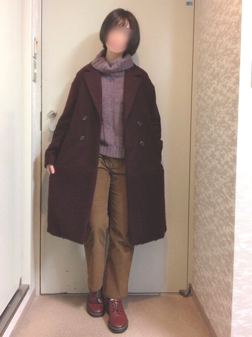おはようございます☀️ 閲覧いただきありがとうございます😌 昨日の通勤コーデ🧥 センスオブプレイスのセールで買ったニットは、着心地がいいし丈も短めなのでバランス良く見えて🙆♀️ 首回りも暖かいです🧣🧣 あまりこういう色の服は着ないけどたまにはいいかな、、🤔