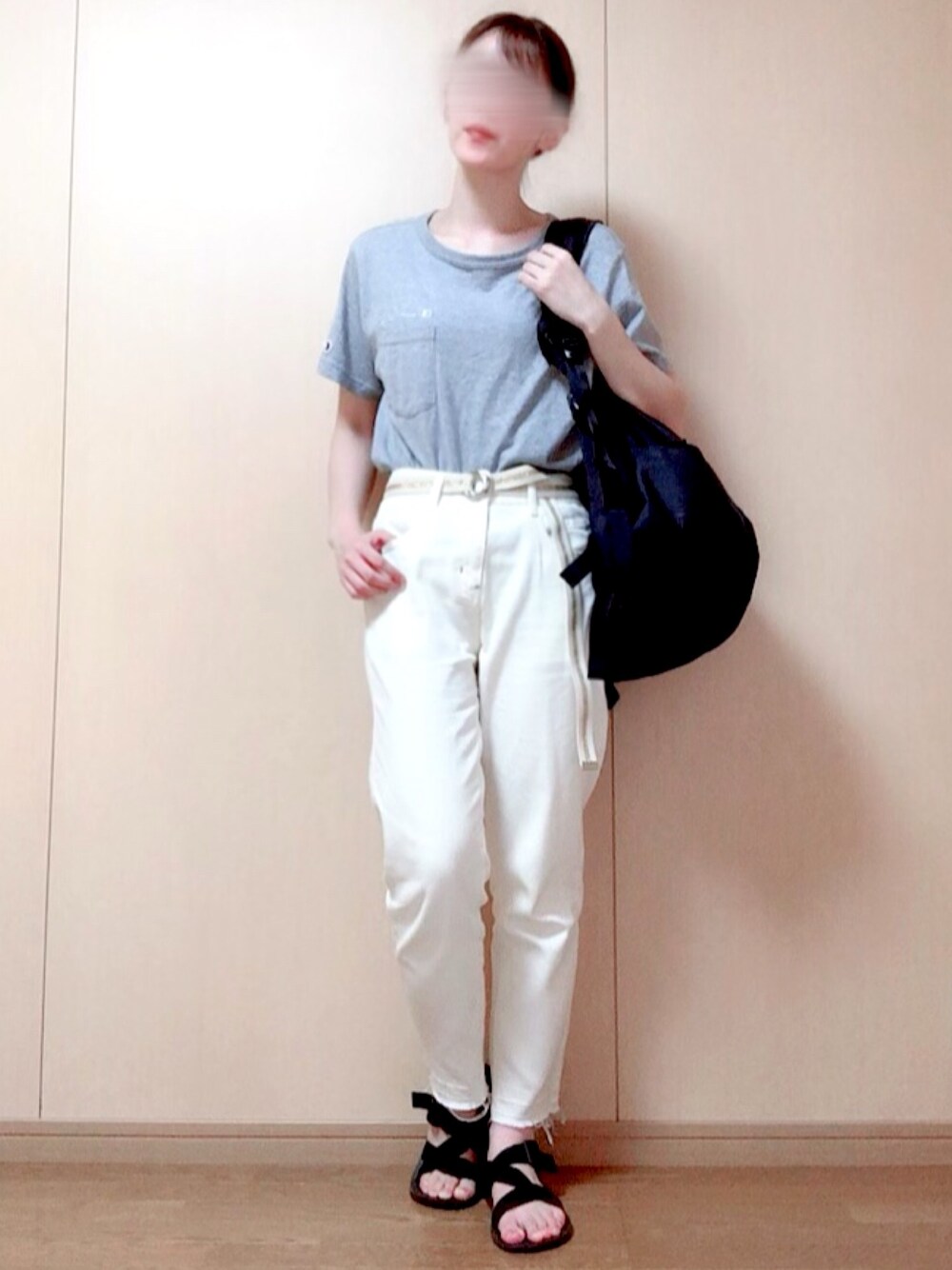 おはようございます☀️ 閲覧いただきありがとうございます☺ また前回の投稿にいいね・お気に入りをしてくださりありがとうございます🙇♂️ グレー×白で爽やかなコーデ🐭⚪ どちらも程よくゆとりがあるサイズ感なのでラフにゆるく着ることができます🙆♀️ やっぱりこのデニムの形が良すぎる👖🌟 リュックとサンダルは黒でまとめました👡