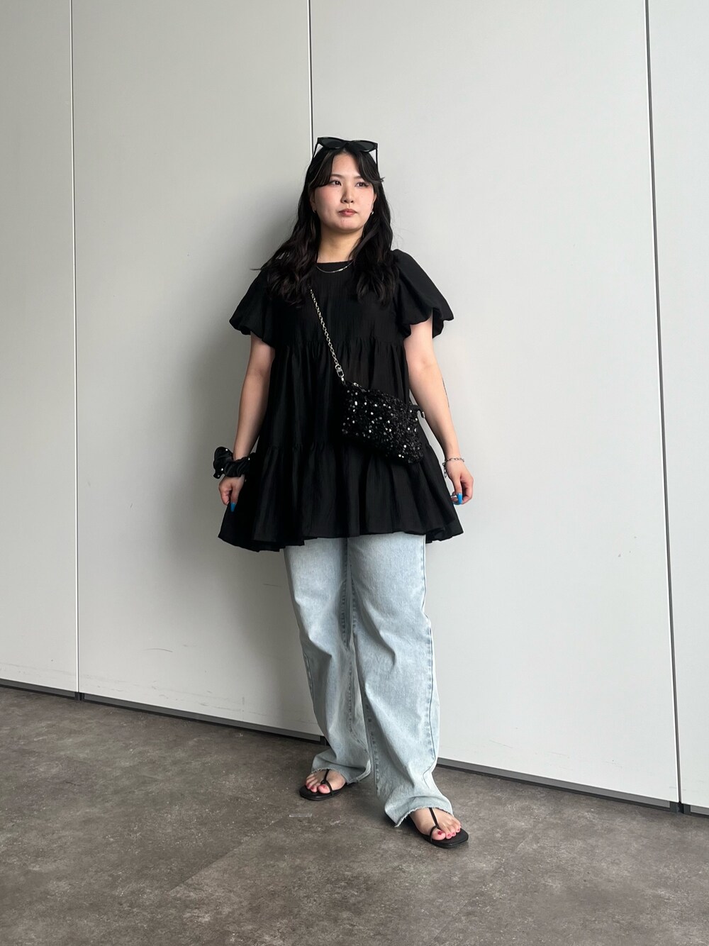 シアーブラウスにデニムで楽ちんな大人カジュアルコーデ! トップスはMサイズ、デニムはLサイズを着用してます!