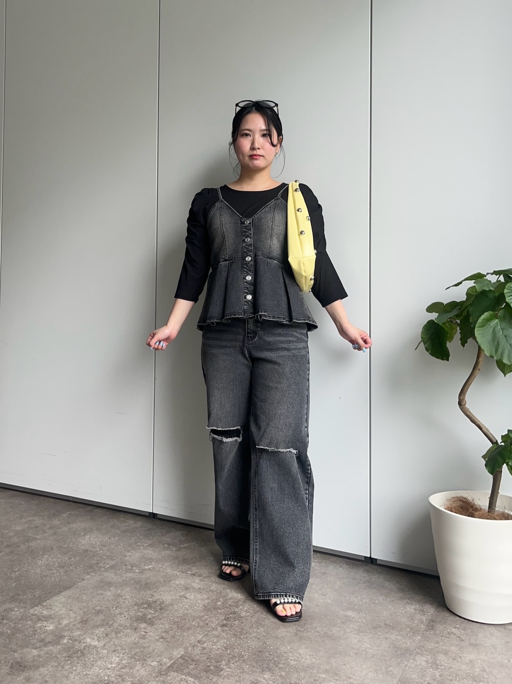 ストレッチの効いたデニムセットアップで楽ちんオシャレコーデ! トップスはMサイズ、パンツはLサイズを着用してます!