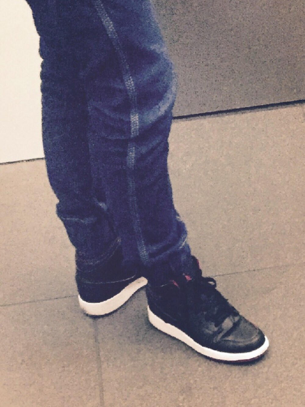 ちょっとわかりづらいけど、 黒に赤いふちどりのエアジョーダン。