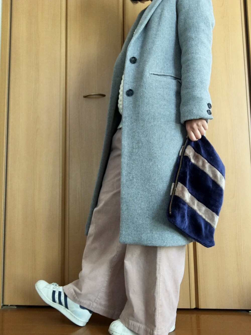 色合い的には春ですね ピンクのコーデュロイワイドパンツ(長い)は自分的には挑戦でした うまく着こなせるといいけど 最近流行りのなんとかピンク