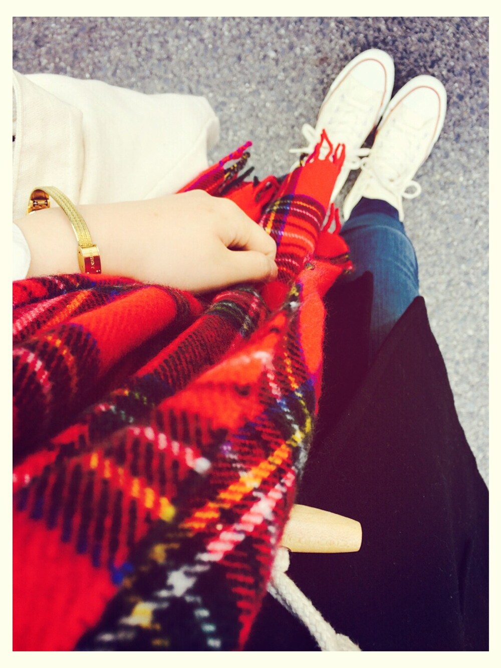 映画に行く格好。 チェックマフラー主役に。 他はいたってシンプルに♡
