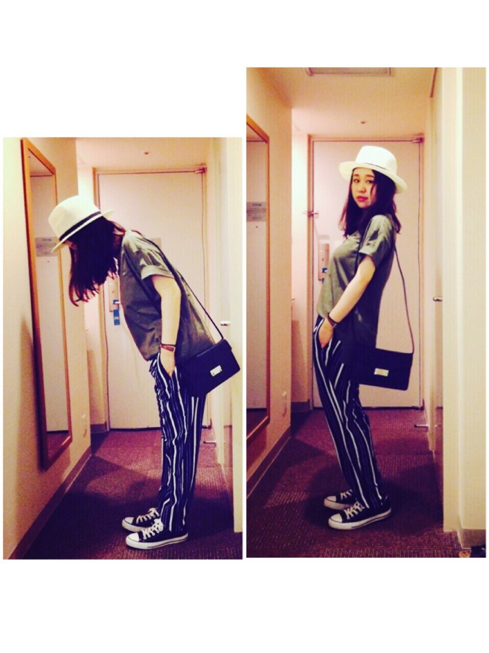 旅行コーデ。 去年買ったGUのパンツ。 久々に引っ張り出し。 400円くらいだった気がする‼︎ コンバースにもっとヴィンテージ感を出したい!! どうしたらいいかなぁ。。