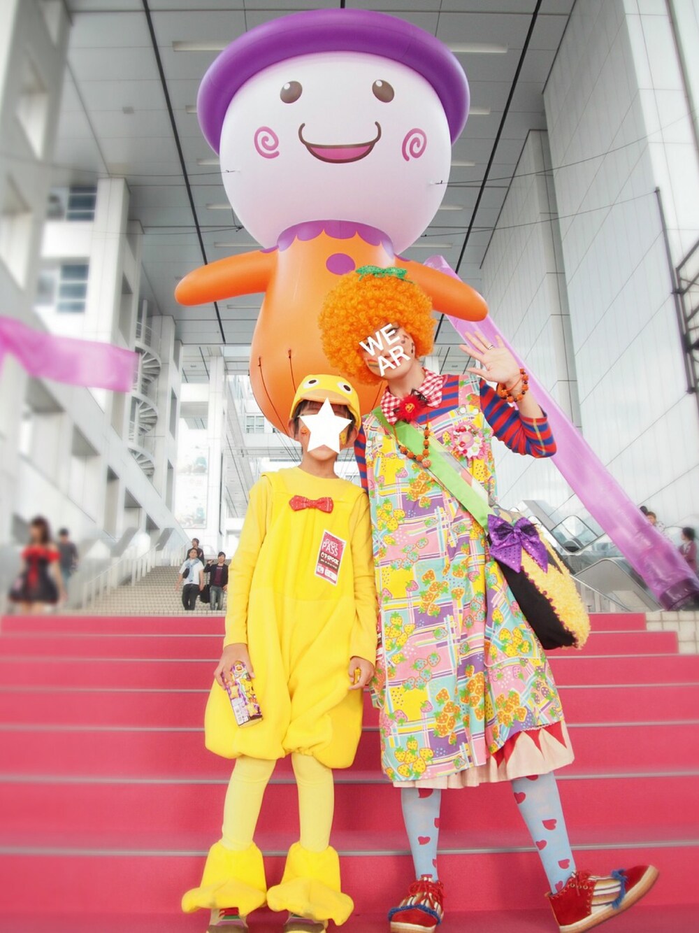 ハロウィンコーデ★ 全て手持ちの服でむりやりピエロ風 子どもはぴよこちゃんになりました〜 ワンピース→古着 つけ衿→ahcahcum