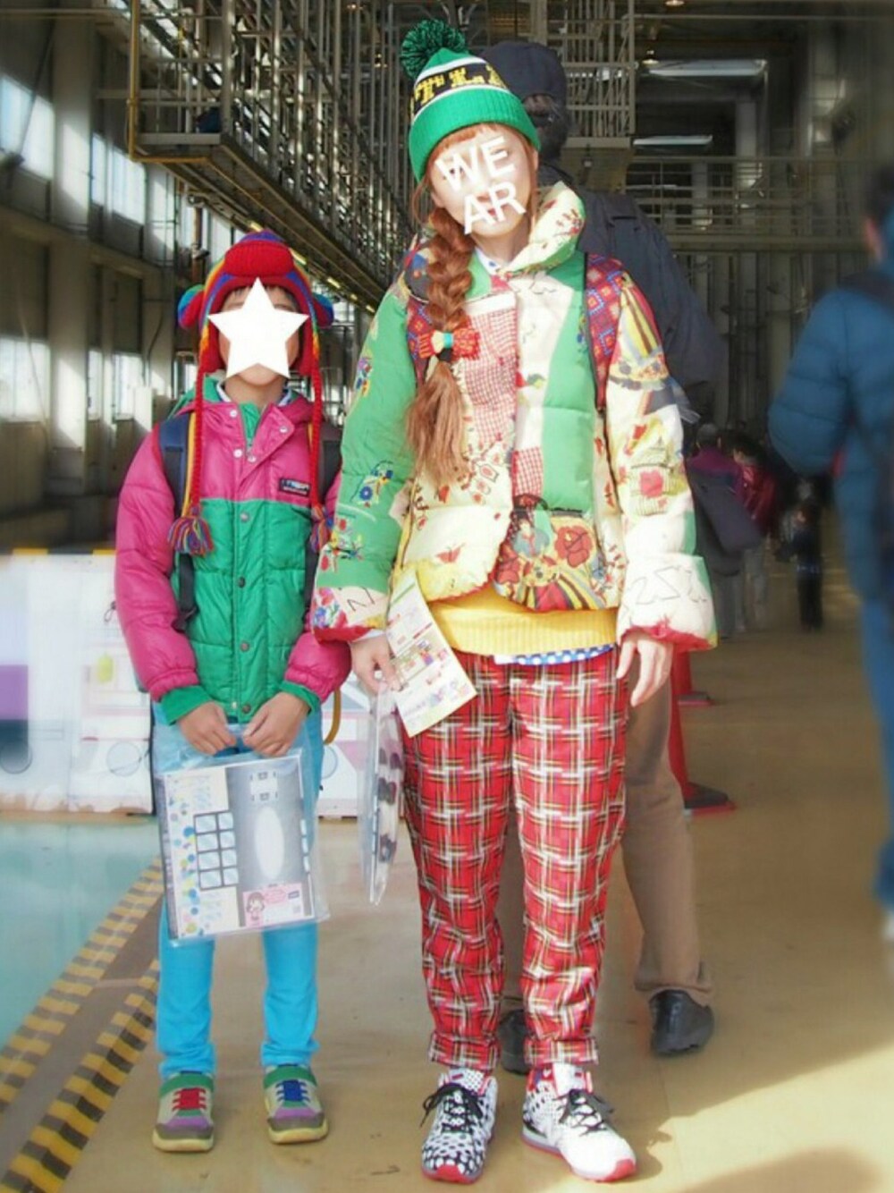 カラフル親子♪ 寒かったのでダウンとニット帽で。。。