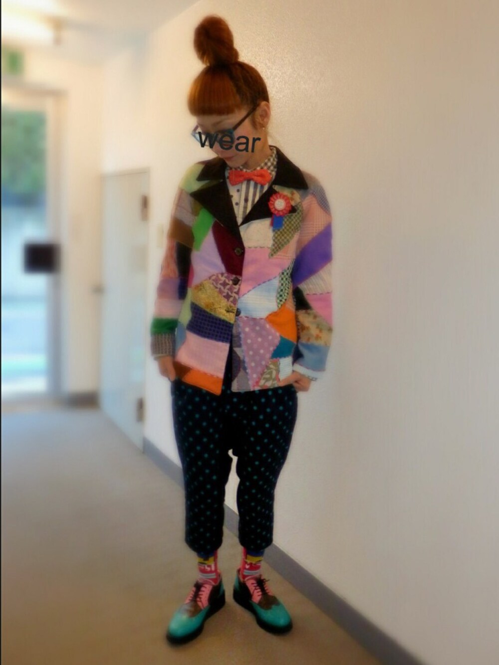 ジャケット:古着 蝶ネクタイ:HAPPY BOUNCE パッチワークと色使いがお気に入りのジャケットでお買い物♪