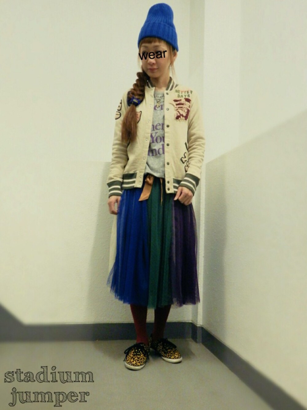 4色のチュールワンピースは深い色合いがお気に入り♡ ワッペンいっぱいのスタジャンとヒョウ柄スニーカーを合わせてカジュアルに★ 今日は節分☆ 恵方巻食べて豆まきしました♪ でも恵方巻、食べ終わるまでしゃべっちゃいけないのが結構苦痛…(−_−;)