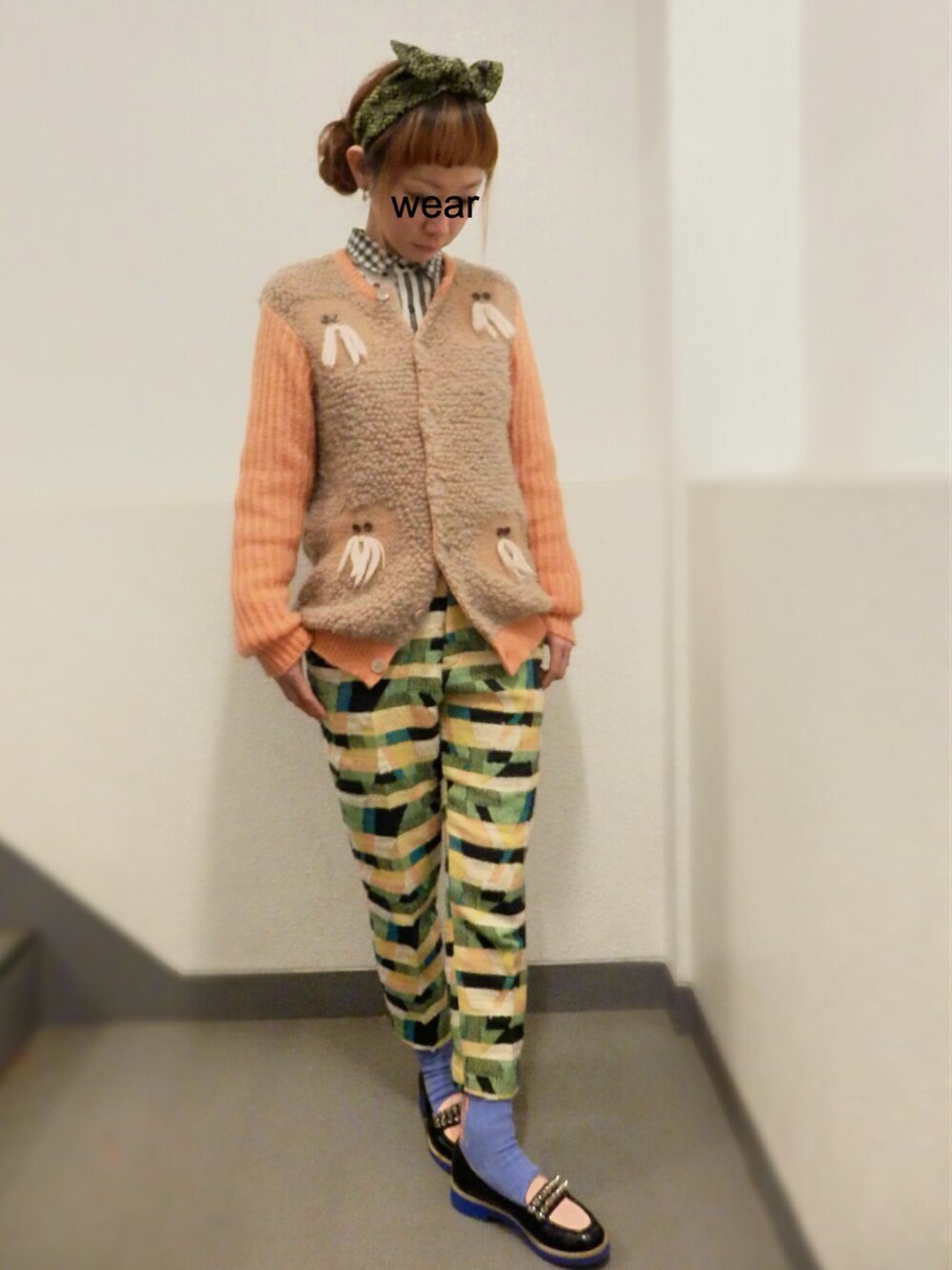 なにやら流氷をイメージしたらしいスラックスにアザラシのカーディガンを合わせて北極(?)コーデ♪