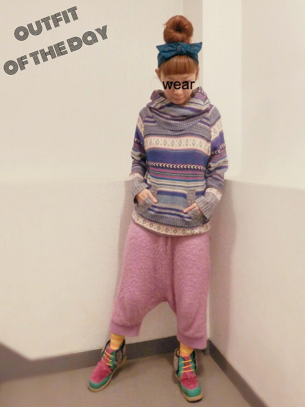 動物シリーズ第三弾♫(←いつから?) 「ホウホウニット」という名前のやわらかニットパンツは、後ろのフクロウさんのお顔がポイント♡ 鳥の足をイメージして黄色のボーダーソックスを合わせてみました(笑) このニットパンツのフクロウをずっとアヒルだと思い込んで「ガー子」と名付けて愛でておりました…