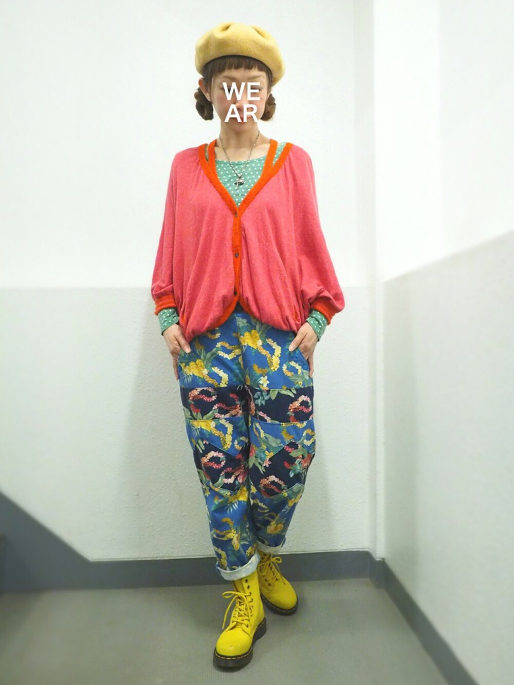 ハイビスカス柄がお気に入りのパンツは オールシーズン使えて便利👍 雨の日は濡れにくいので マーチンをよく履いてます👢 黄色で安全第一!😊✨✨