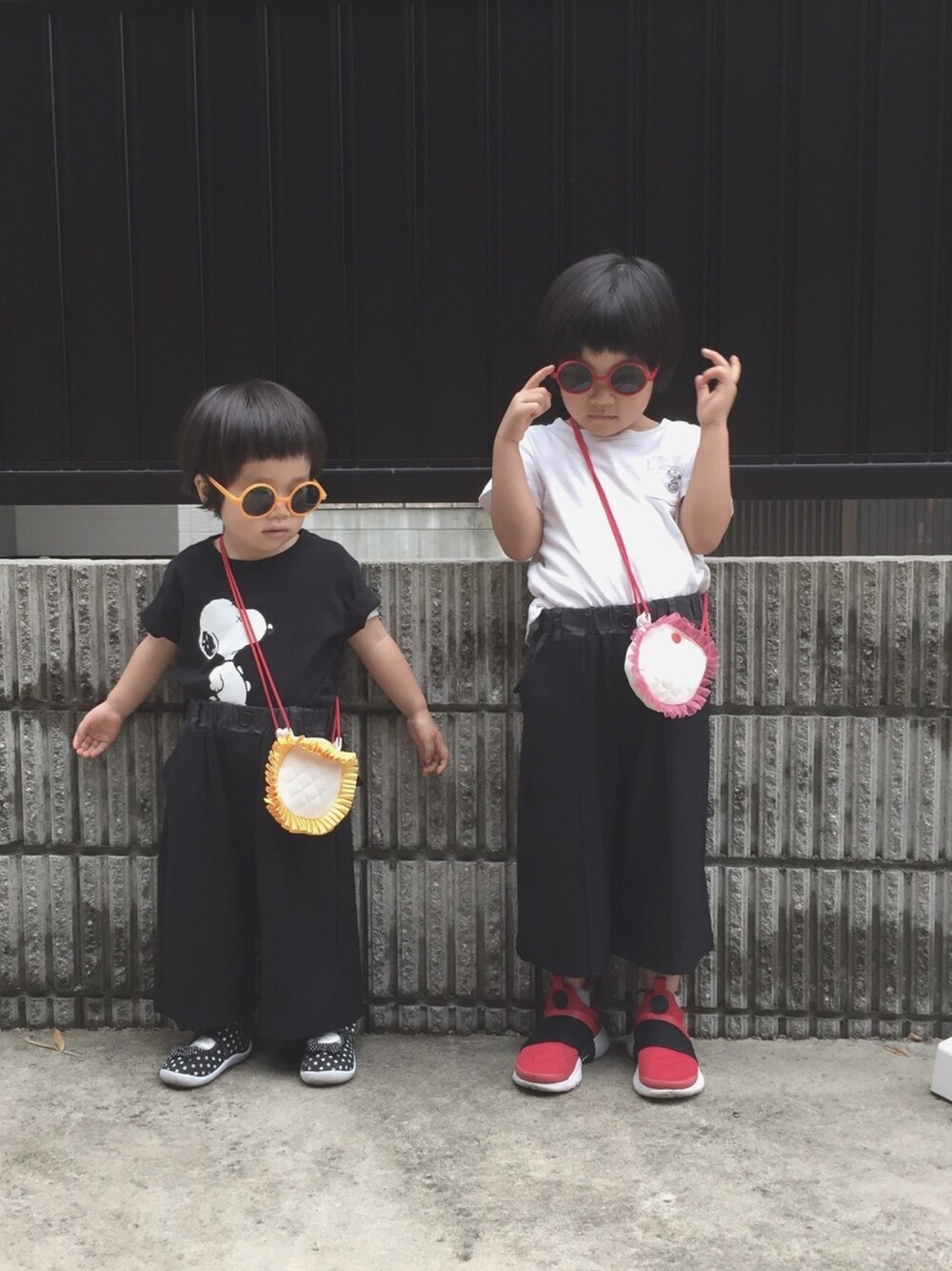 セールで姉妹お揃いのパンツ買いました◎ 今日もお気に入りのヤバいサングラス🕶笑