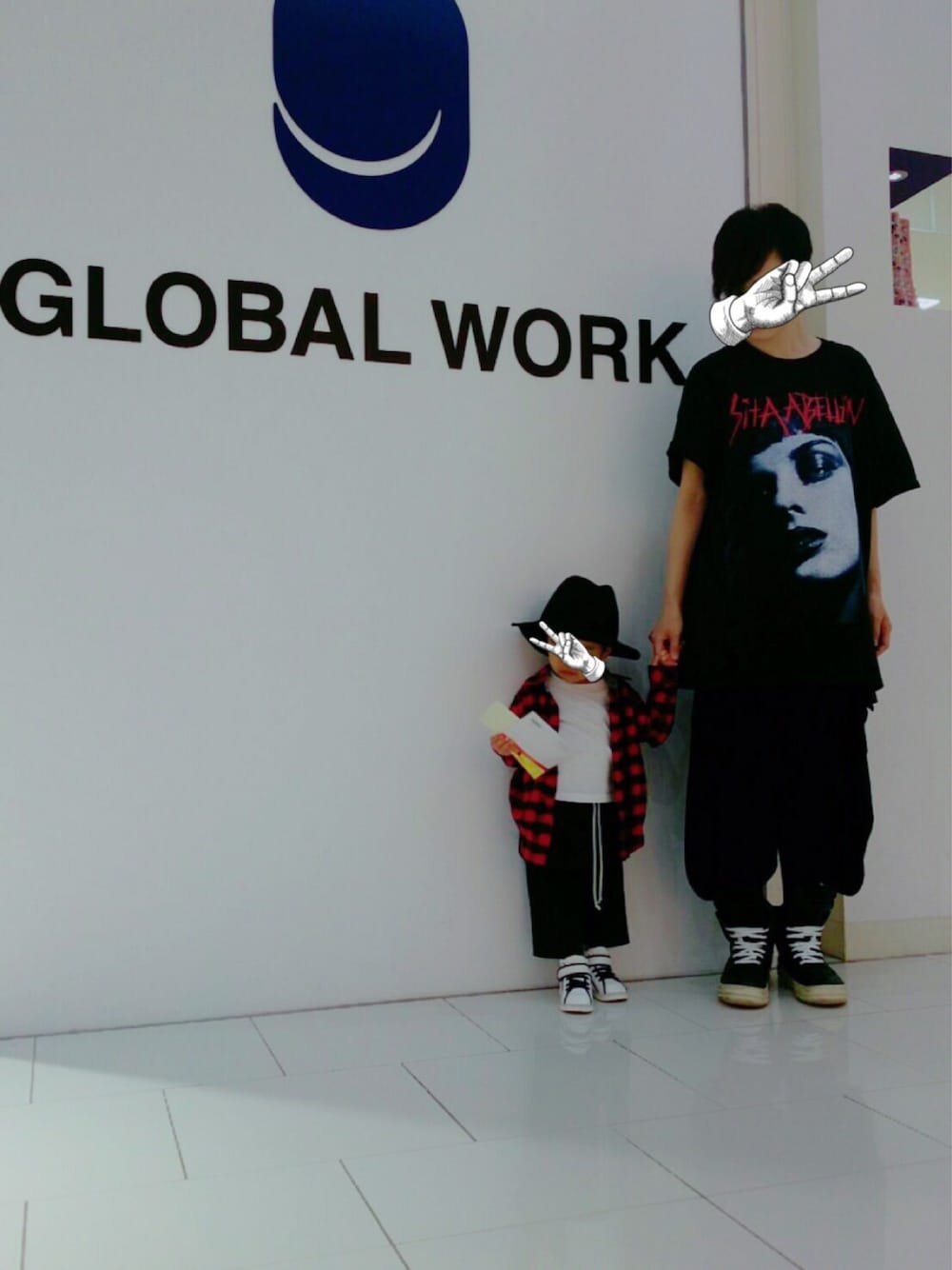 SITA ABELLANプリントのインパクトのあるTシャツで、真っ黒コーデ。 家族で近所のショッピングモールをふらふら。 メガネを新調!こないだ誕生日だったので主人がプレゼントしてくれました(OvO)ありがたやー。 娘にはハットを購入しました◎ 主人愛用のrick owensのパンツに寄せて作ったレイヤードパンツを履いて。 娘はとーちゃんと一緒!と嬉しそう。笑