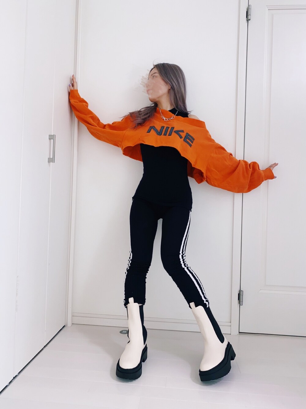 gallerie tokyo で購入した リメイクスウェットとGUのサイドゴアブーツめちゃくちゃお気に入り🧡