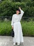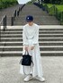 ティアードスカートが普通の段々になってないのがお気に入りポイント🤍 ウエストゴムなのも嬉しいよ〜 スニーカーはPUMAのマユでボリュームのあるころんとしたシルエットが可愛いです🫶🏻