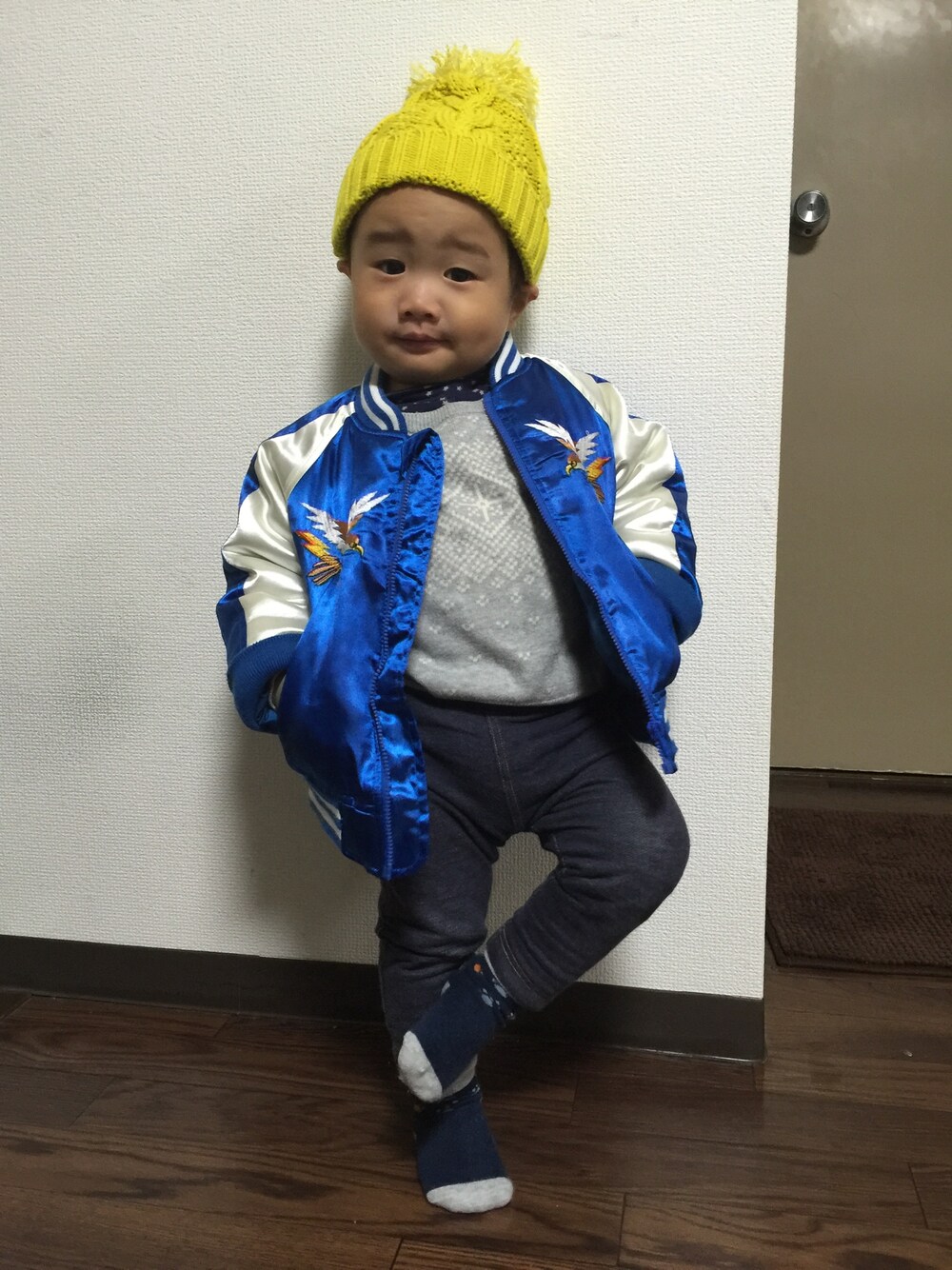 お顔に似合わずヴィンテージのスカジャン着ちゃいました👏