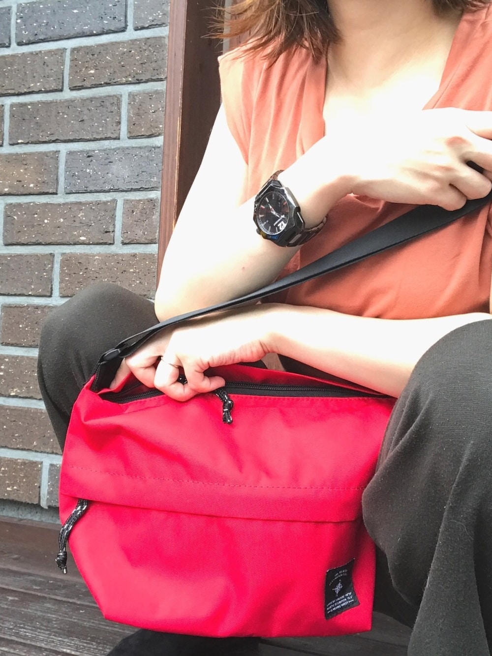Tシャツで楽ちんにしながら靴はポインテッドで大人っぽく、 赤のバッグが目を惹くポイントですが、甘くならないようにメンズの時計でカジュアルダウンしました★ 時計が2万円程でしたが、トータル3万6000円ほどです\( ˆoˆ )/