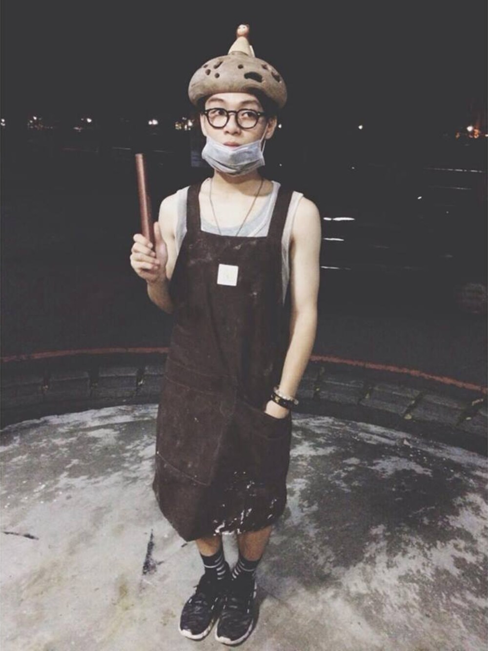 工作中無聊隨意拍押呼 HAT : 學長手作燈罩 TOP : 工作用圍裙 SOCK : 4 SOCKS SHOES : ADIDAS