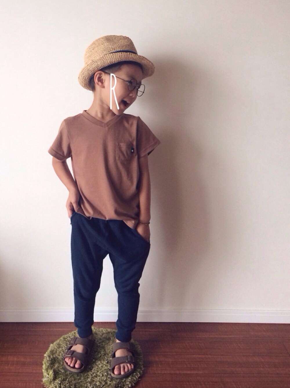 テロっとした生地で しわになりにくいTシャツ❤︎ こないだオーバーオールと合わせたコーデを オシャレでかわいいハルちゃん@haruru06 が まねっこしてくれました‼︎‼︎ 嬉しすぎて隣に並ばせてもらったので、 小窓に失礼します♩♩ ハルちゃん小顔でスタイル良くて❤︎ 我が子のデカ丸顔が際立ってます😂 ☀︎ ☀︎ ☀︎